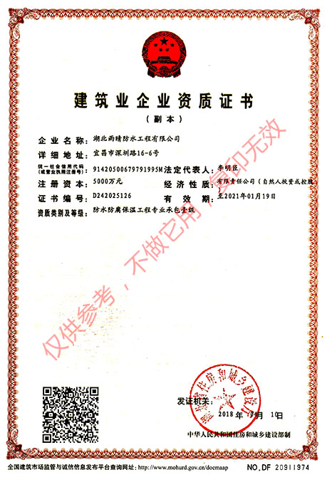 -國家防水防腐保溫工程專業(yè)承包壹級資質(zhì)