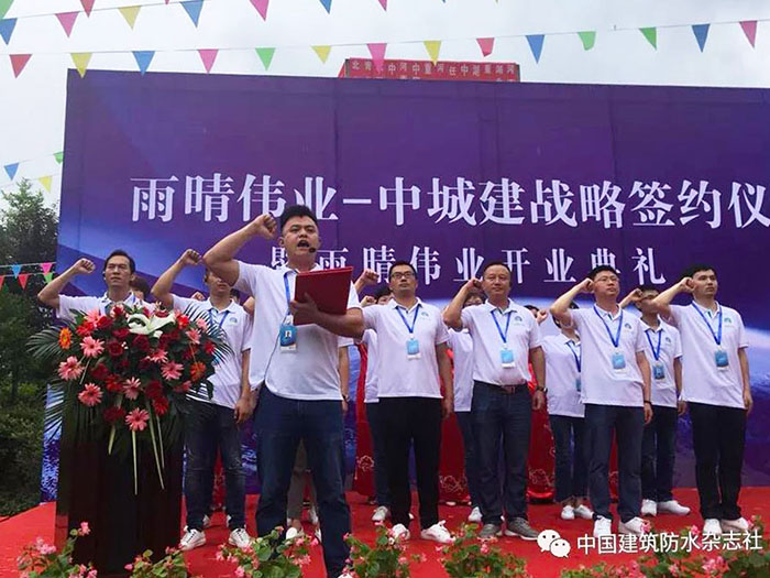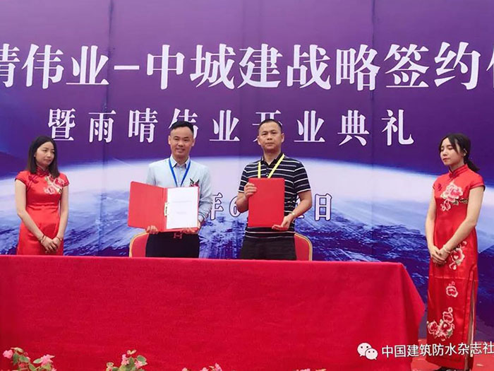 2018年6月21日, 湖北雨晴偉業(yè)防水技術(shù)發(fā)展有限公司開業(yè)慶典暨中城建戰(zhàn)略簽約儀式活動(dòng)現(xiàn)場賓客云集,人頭攢動(dòng),場面火爆、掌聲如雷。這標(biāo)志著雨晴偉業(yè)從今天起正式的面向大眾,面向市場,也意味著雨晴偉業(yè)工廠的正式運(yùn)營。